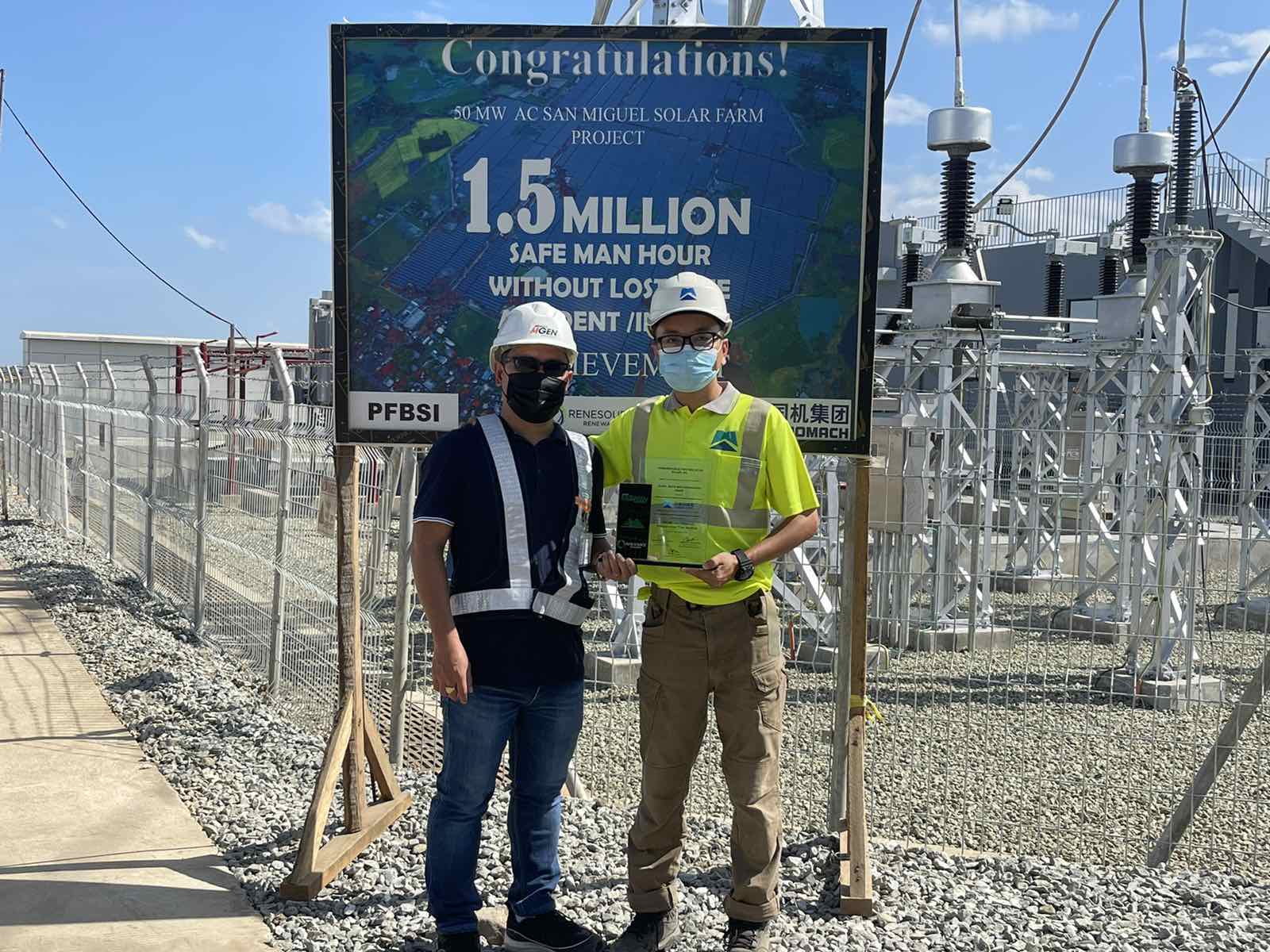 PowerSource First Bulacan Solar, Inc. (PFBSI) recently bagged 1.5 million safe man-hours without lost time incident, a milestone that shows the company’s commitment to safety and security at its power plant site in San Miguel, Bulacan.